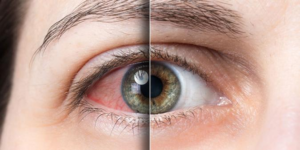 - Mata merah dan nyeri (akibat tekanan bola mata meningkat pada glaukoma neovaskular)